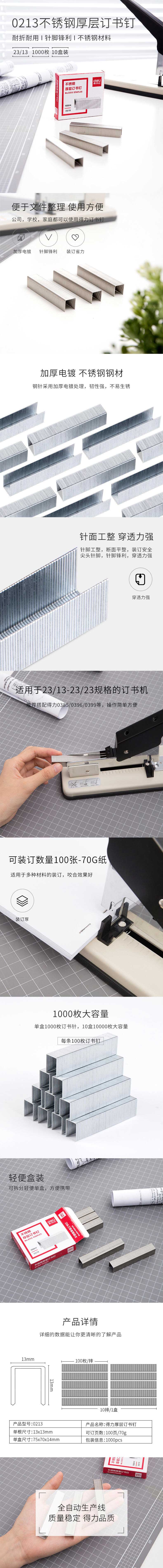 得力不锈钢加厚订书针23/13