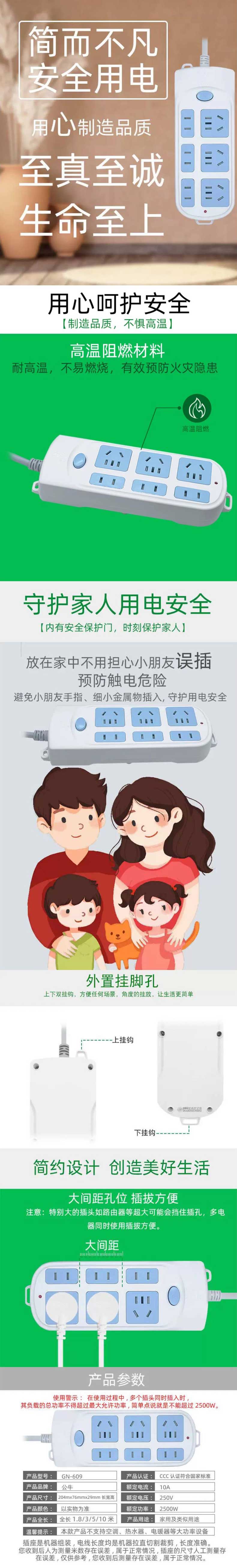 单位:个 GN609-5 六联插座/排插/插线板,带总控开关