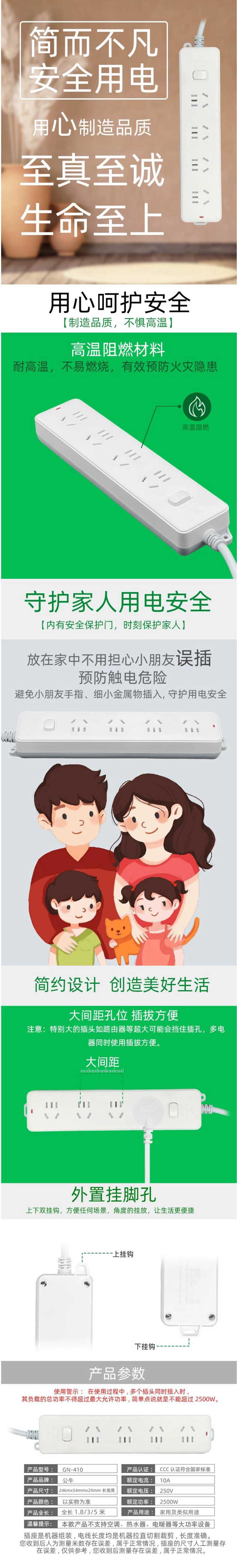 单位:个 GN410-3 四联插座/排插/插线板,带总控开关