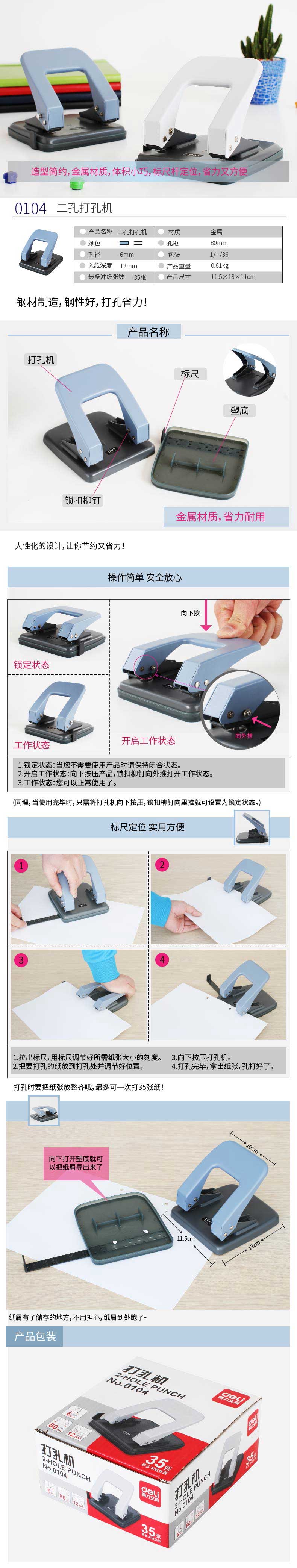 得力二孔打孔器 35张
