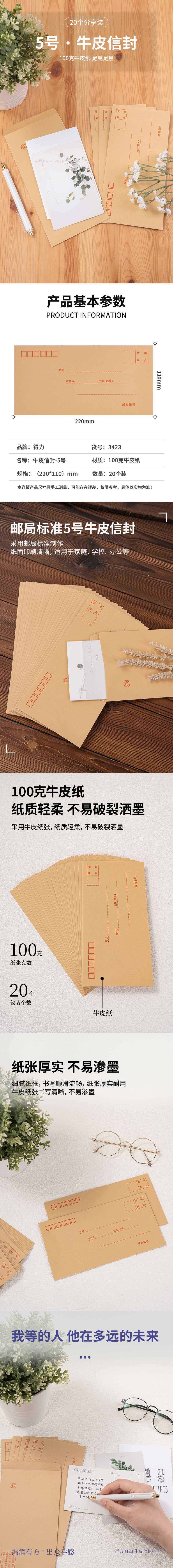 得力牛皮纸信封5号