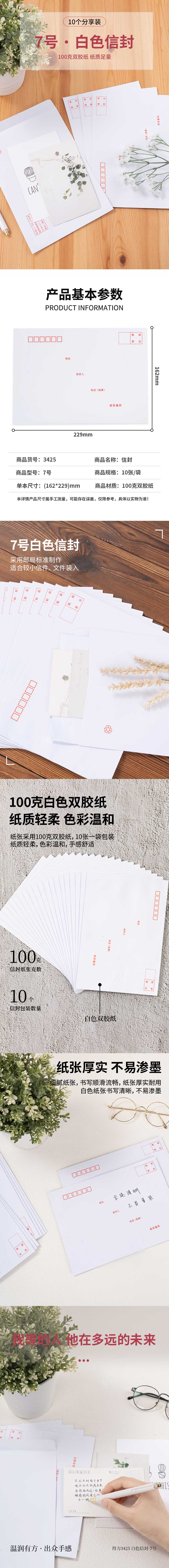 得力白色信封7号