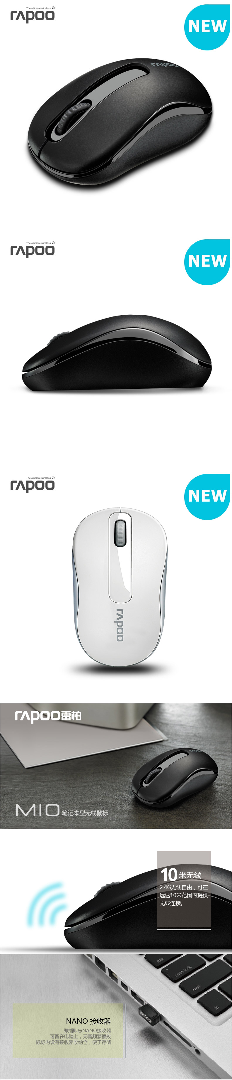 单位:个 M10 适用于笔记本和台式机电脑,接收距离可达10米,需用1节5号电 池待机达9个月