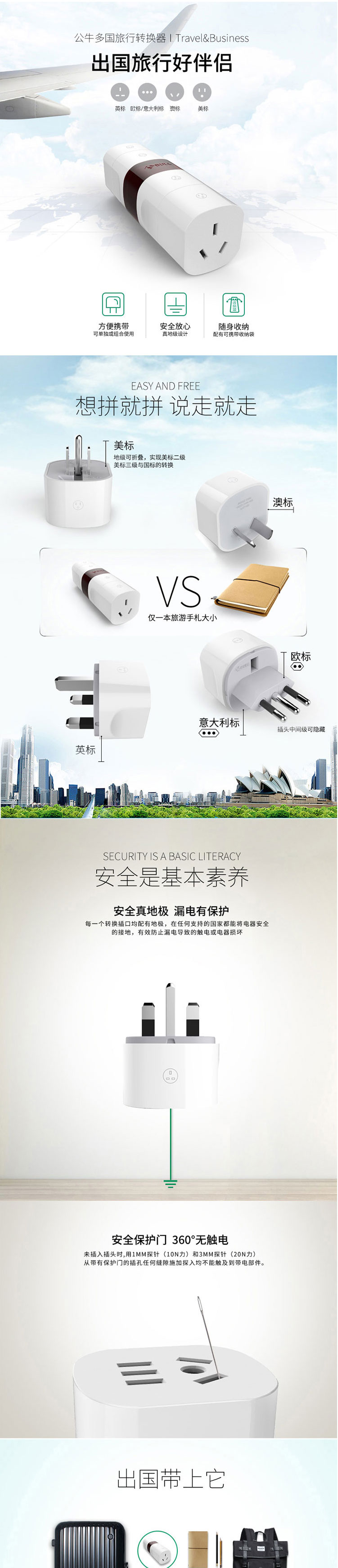 单位:个 L07 多国旅行转换插头,适用英标/欧标/意大利标/澳标/美标等