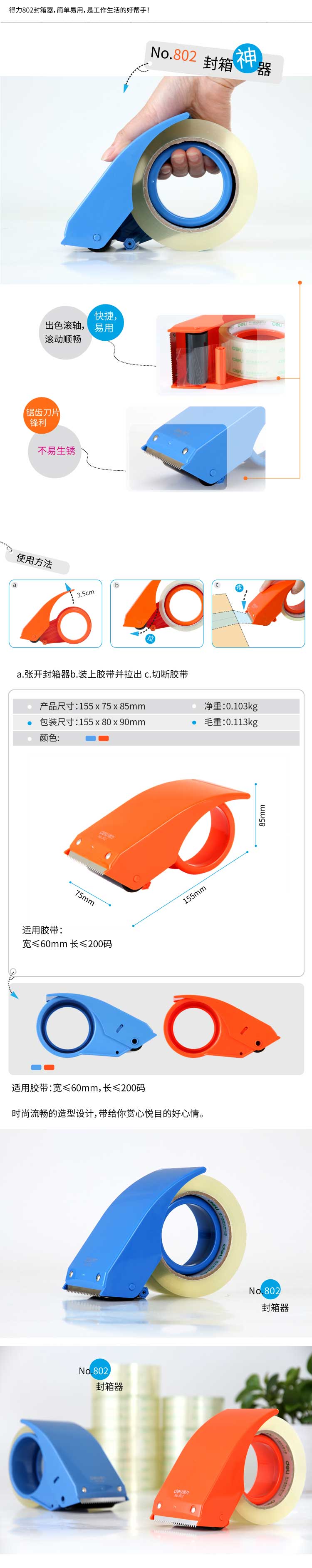 单位:个 #802宽胶带/大胶带/透明胶带切割器,包装率1/60