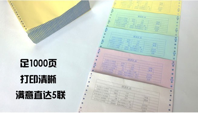 金江打印纸五联 241-5 1/2白粉绿蓝黄