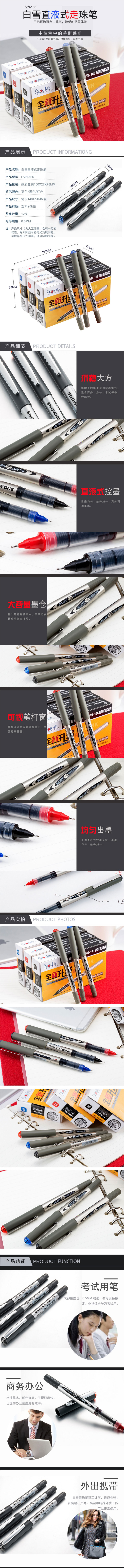单位:支 PVN166全针管中性笔/签字笔/碳素笔 包装率1/12/144