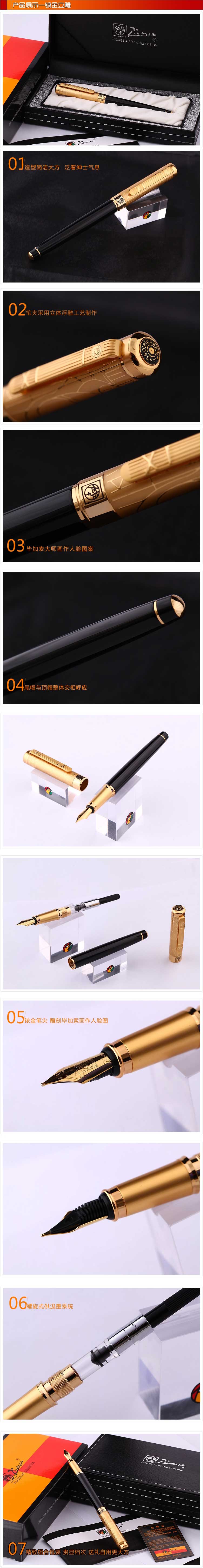 毕加索金夹镀金立雕铱金笔 E明尖