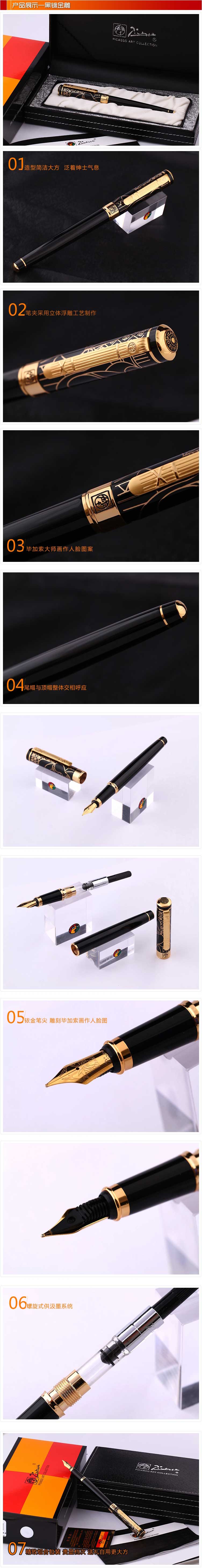 毕加索黑镀金雕铱金笔 C明尖