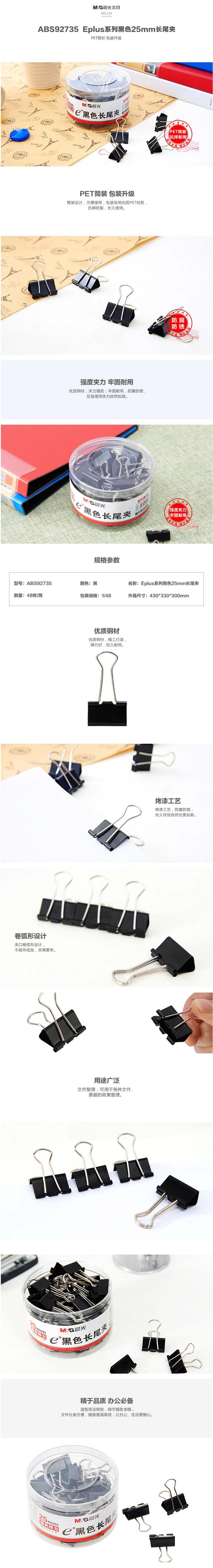 单位:筒 ABS92735燕尾夹25mm 1*48 110页 包装率1/48