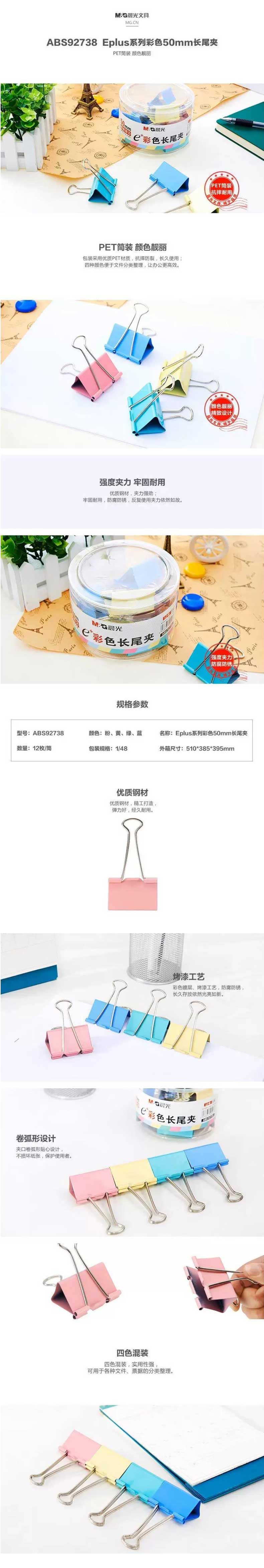 单位:筒 ABS92738彩色燕尾夹50mm 1*12p 240页 包装率1/48