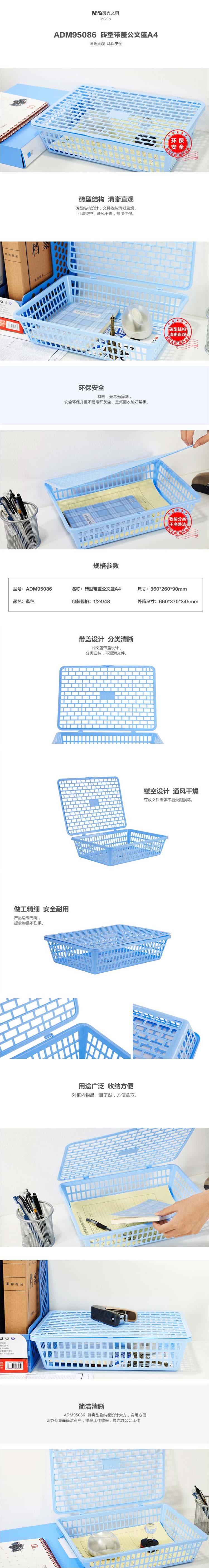 单位:个 ADM95086收纳筐/公文筐,砖形蓝色A4 包装率1/24/48