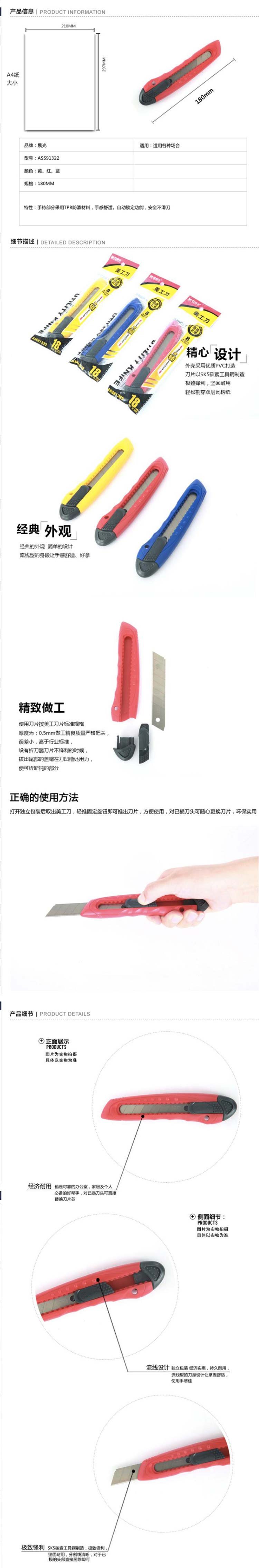 单位:把 ASS91322 推锁 适配18mm美工刀片 包装率1/24/288