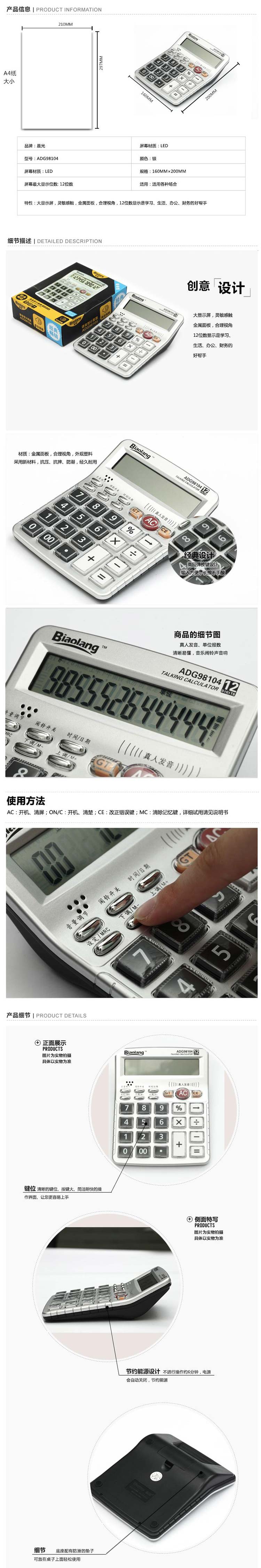 晨光计算器 水晶按键语音型