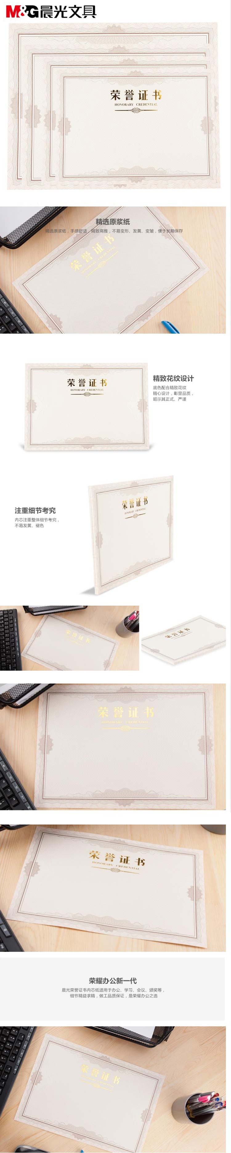 晨光荣誉证书芯 25K