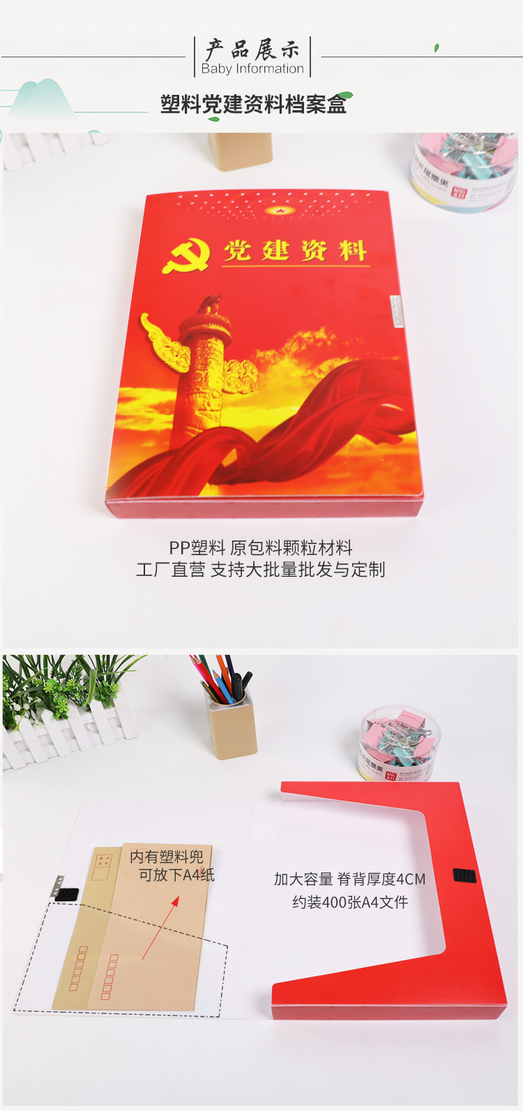 产品名称 : 塑料党建资料档案盒 4cm