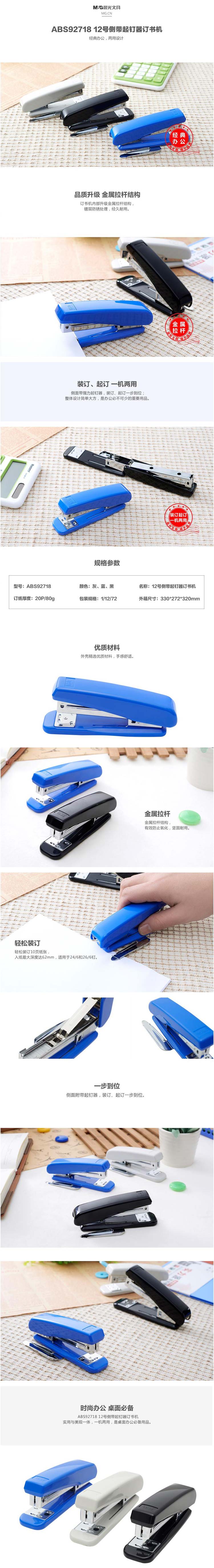 单位:个 ABS92718B配24/6钉20张 包装率1/12/72
