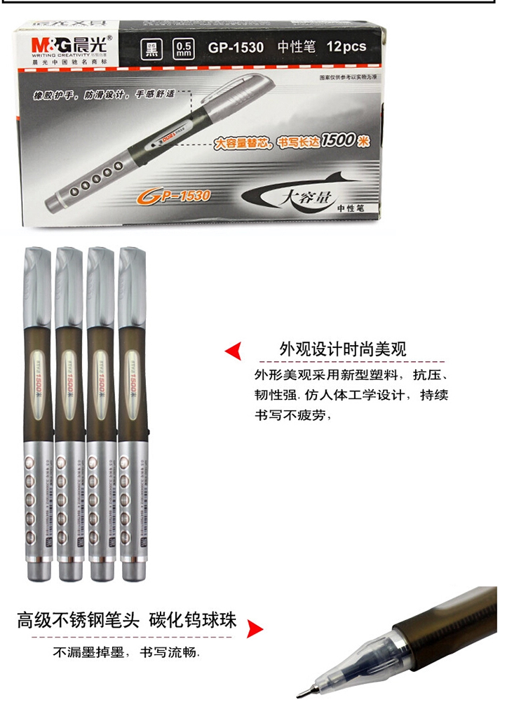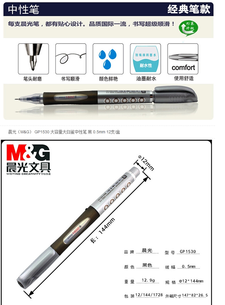 单位:支 GP1530半针管签字笔/碳素笔 包装率1/12/144