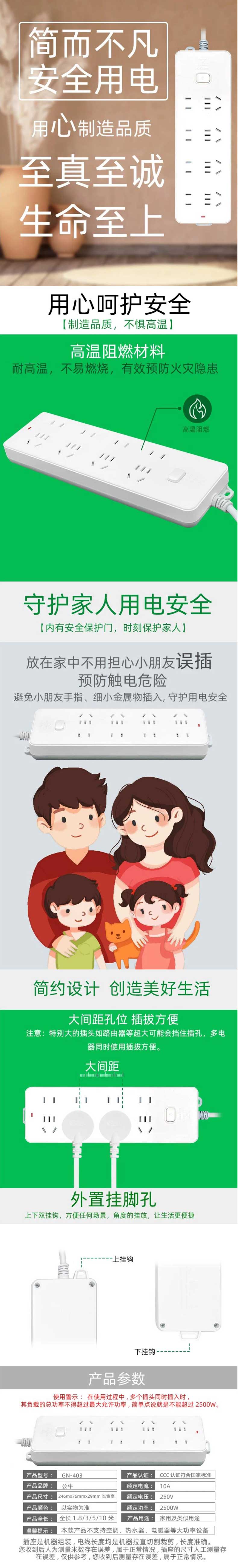 单位:个 GN403-5八联插座/排插/插线板,带总控开关