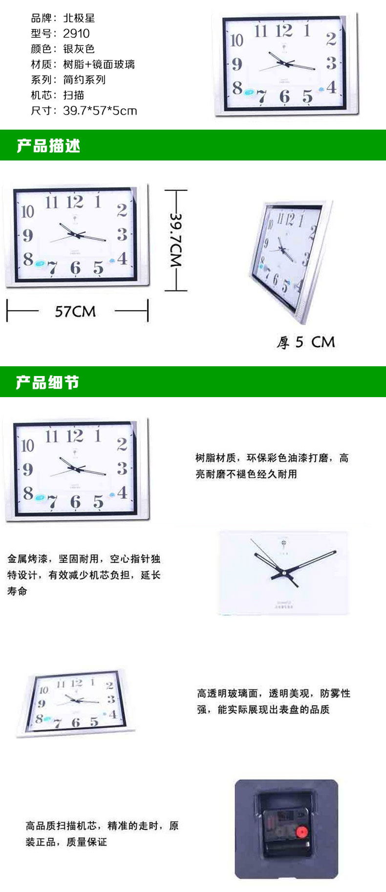 北极星石英钟 方形57*40cm