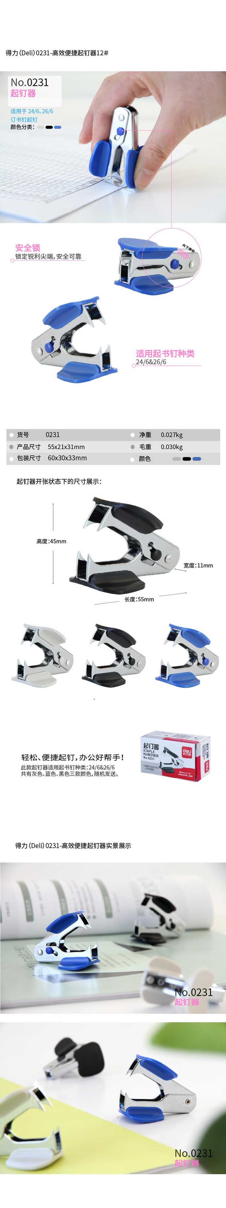 单位:个 #0231 12号起订器,起书钉种类24/6 26/6 包装率1/24