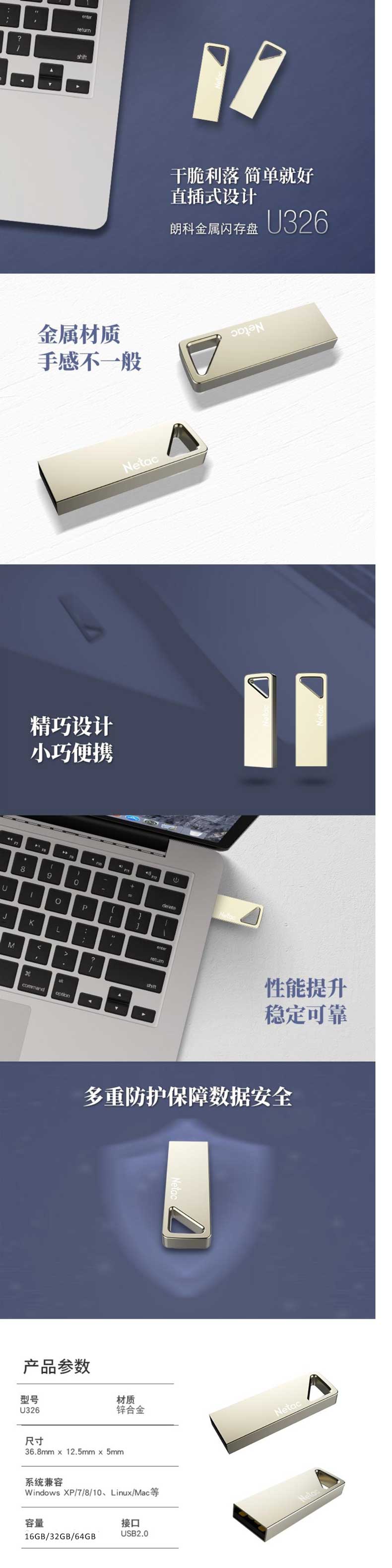 单位:个 U326 USB2.0接口,全金属机身,防水/防尘/防震/防磁/耐压,专有超稳定技术防止数据丢失,质保五年。