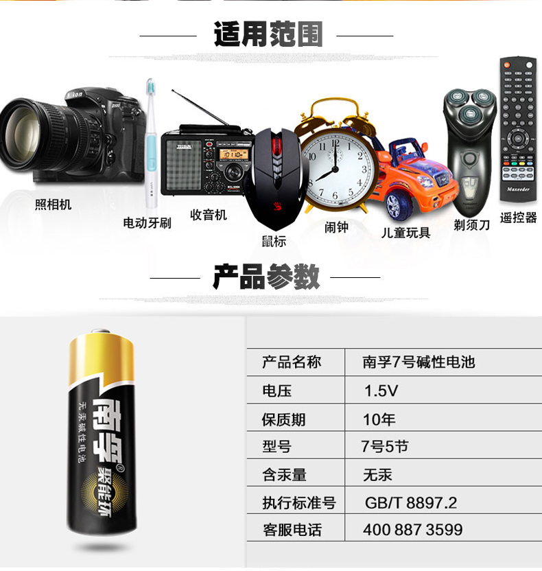 单位:节 AAA碱性电池 包装率1/5/50/500
