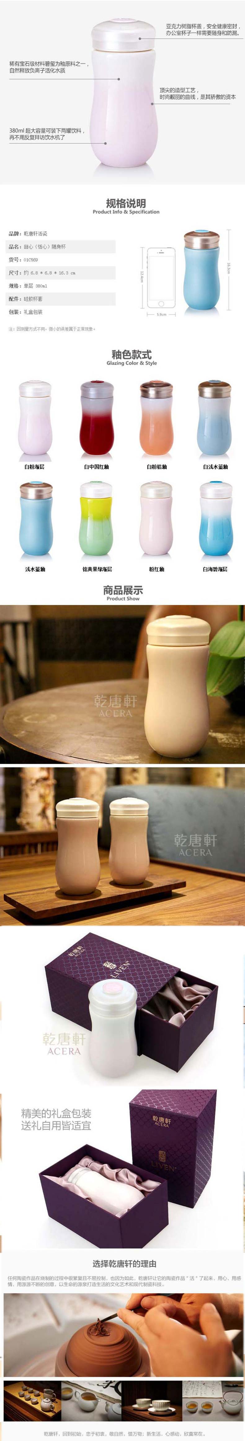 单位:个 01C569-01/02/03/04/05/07/09 单层白海碧/粉红/白果绿/浅水蓝活瓷杯,带礼盒包装
