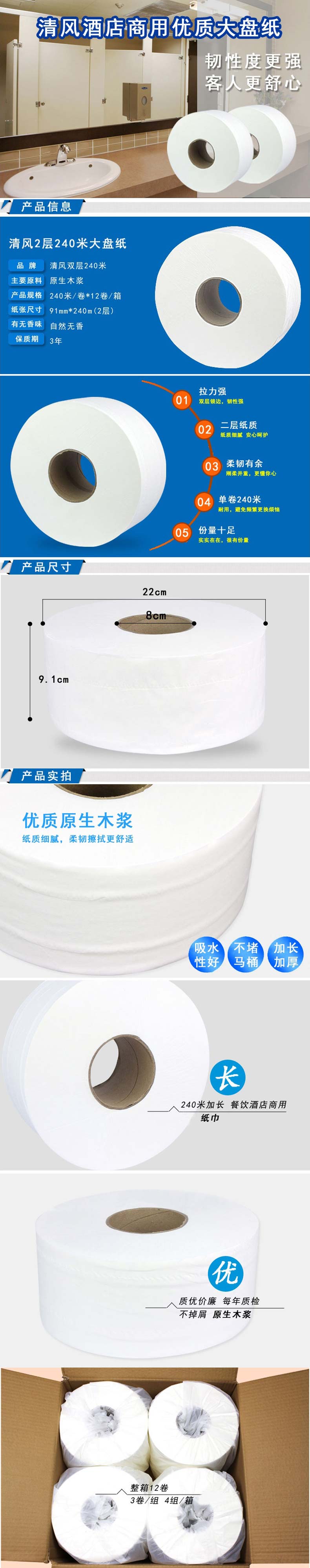 单位:箱 BJ02AB珍宝纸/厕纸120*91mm,适配圆形大盘纸架,12卷/箱