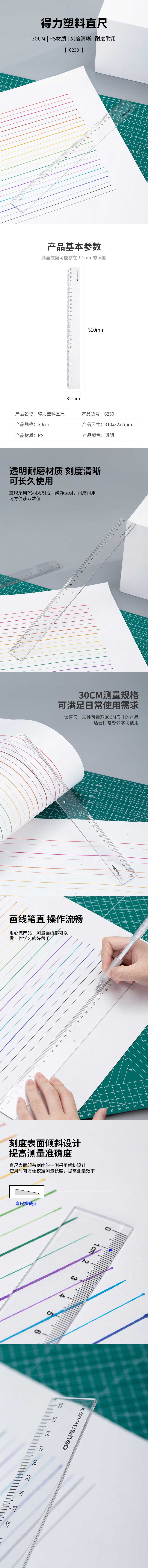 得力塑料直尺30cm