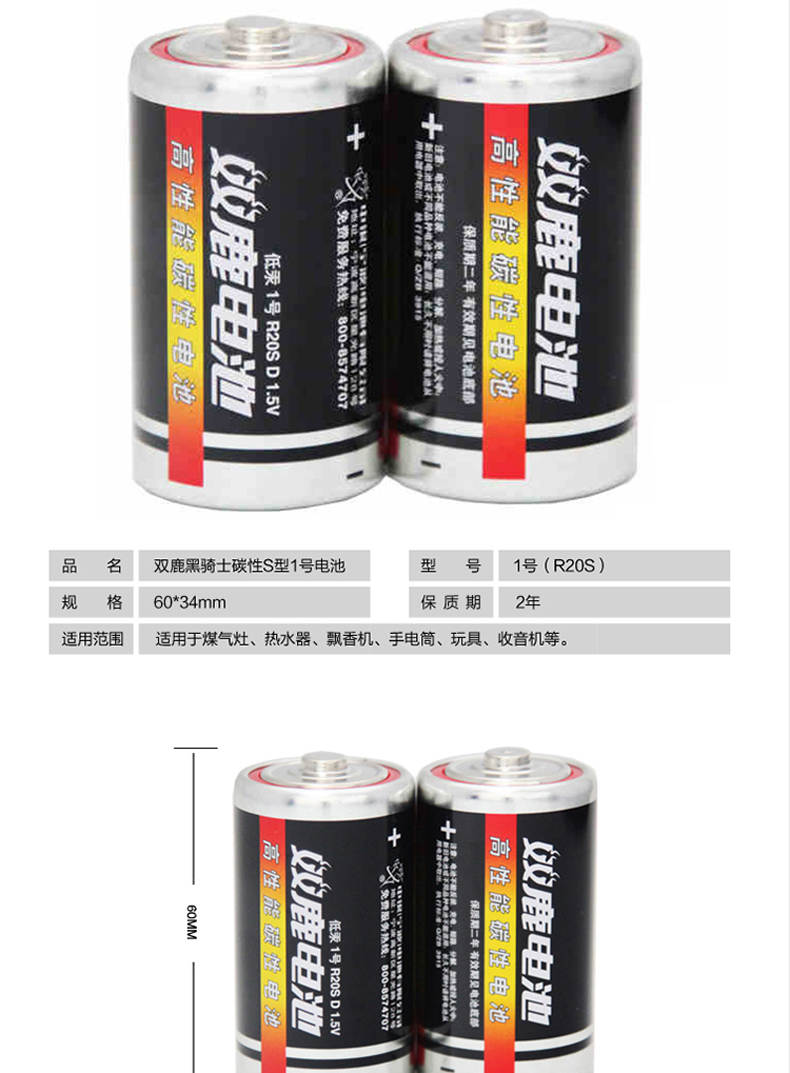 单位:板 R20S碳性,黑骑士2粒/板,适用于煤气灶/热水器/飘香机/收音机/部分玩具/手电筒等,包装率1/12