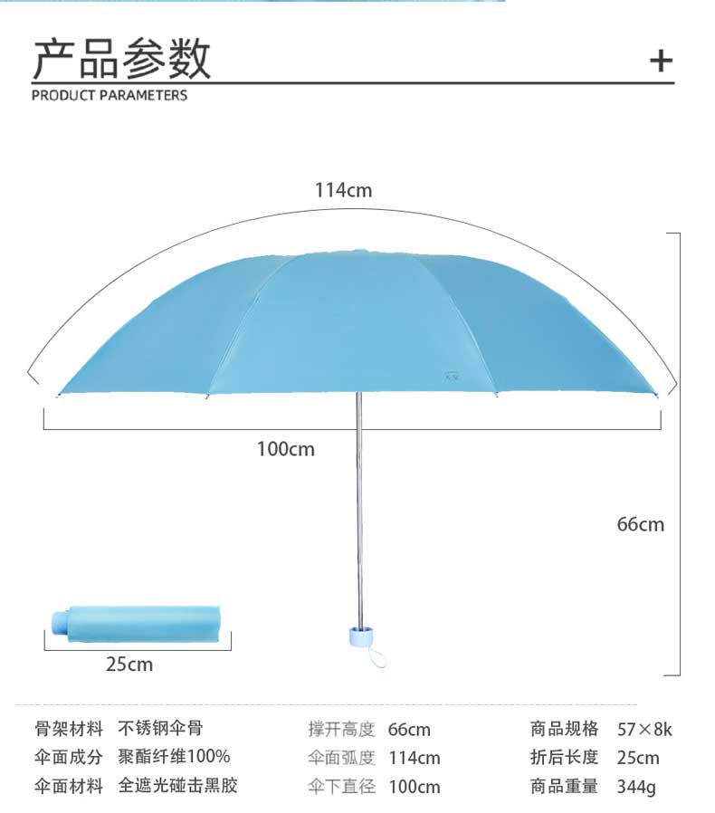天堂三折晴雨伞 57cm*8k