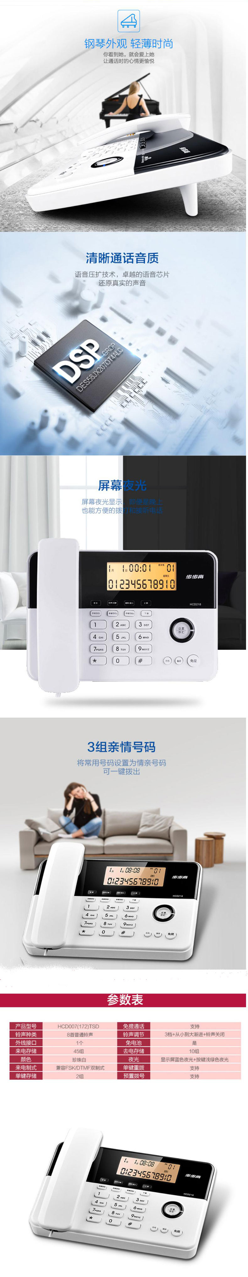 单位:部 HCD218 3组组亲情号码一键拨出,屏幕夜光,靓丽外观,清晰免提通话,质保一年。