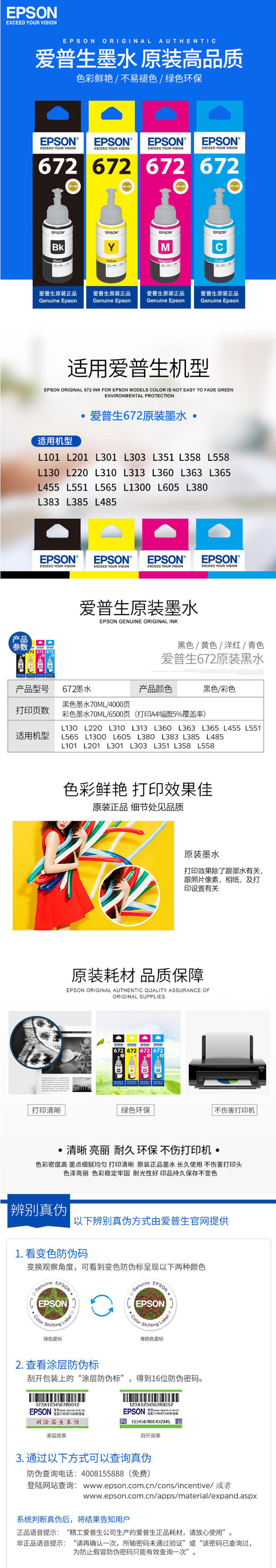 单位:瓶 70ml适配爱普生L551/L303/L1300/L565等机型,打印页数约6500页