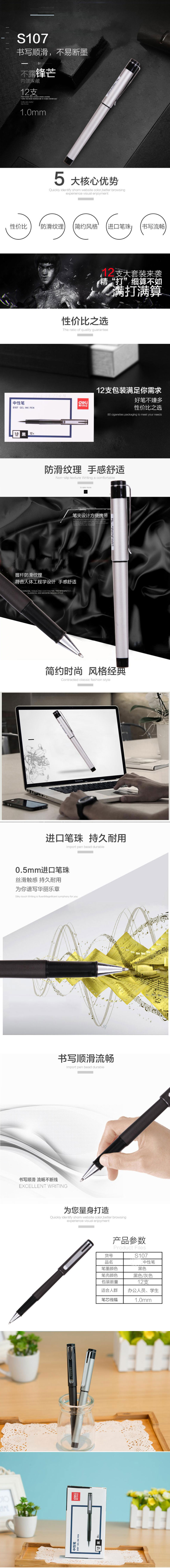 得力中性笔 黑1.0