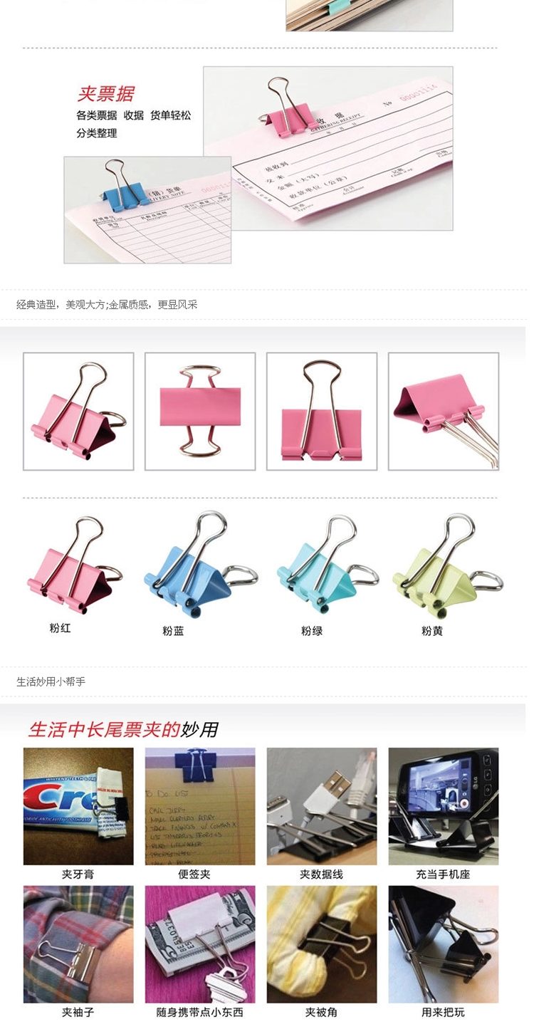 齐心5号彩色长尾夹
