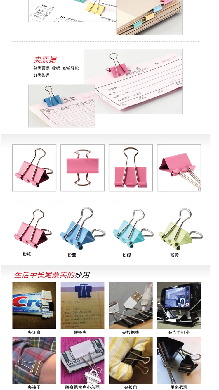 单位:筒 B3632彩色燕尾夹41mm 1*24p 包装率1/36