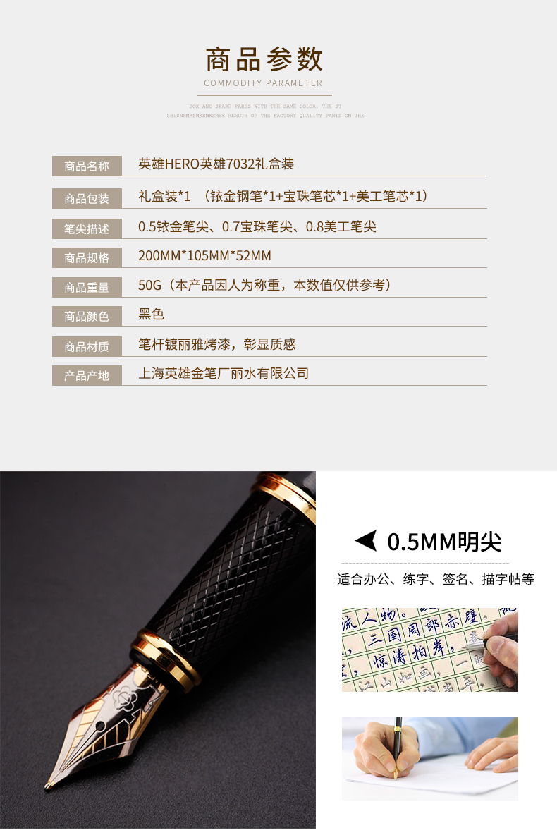 英雄铱金笔套装 明尖