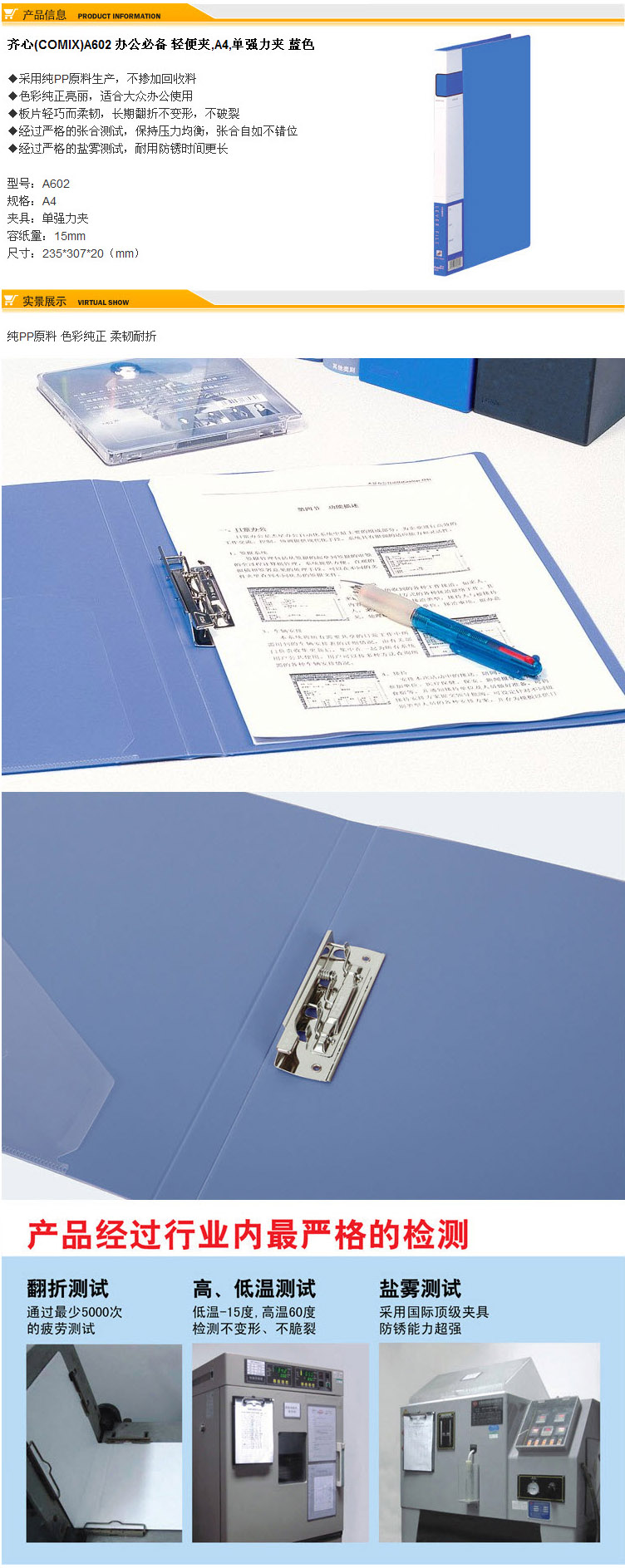 单位:个 A602蓝色文件夹A4 包装率1/20/80