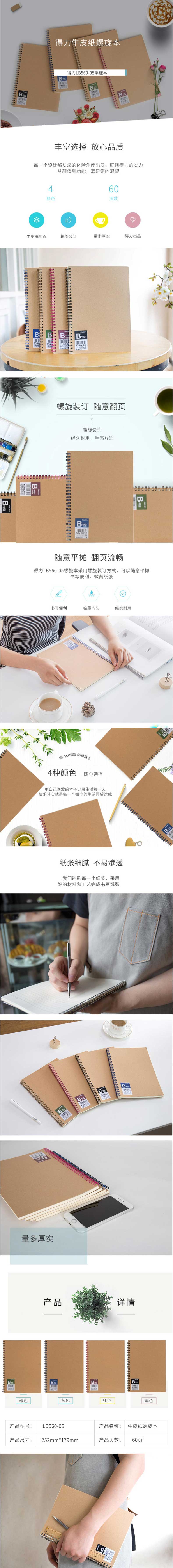 得力牛皮纸面线圈本B5 60页