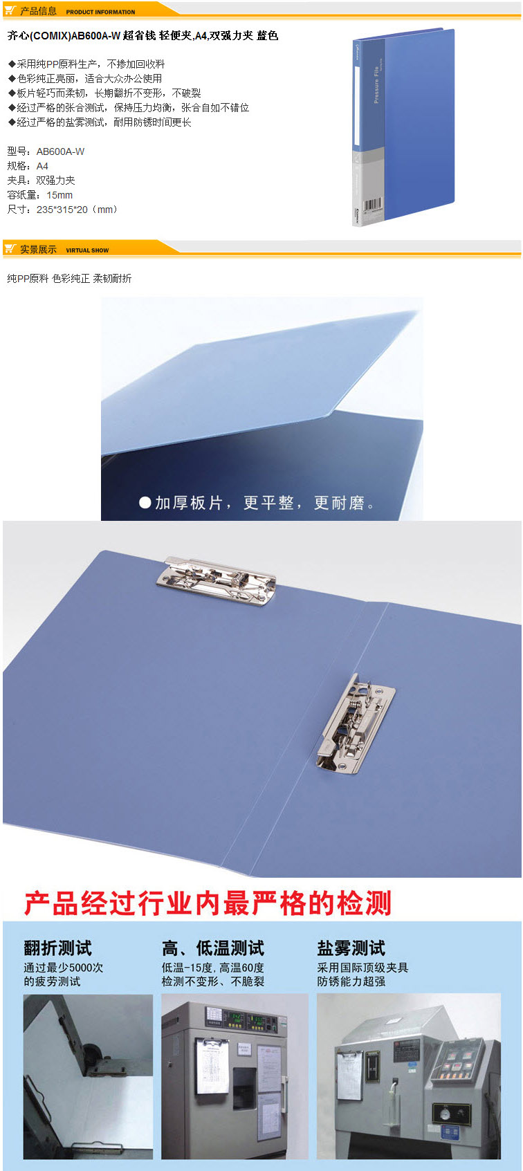 单位:个 AB600A/W蓝色文件夹A4 包装率1/20/80
