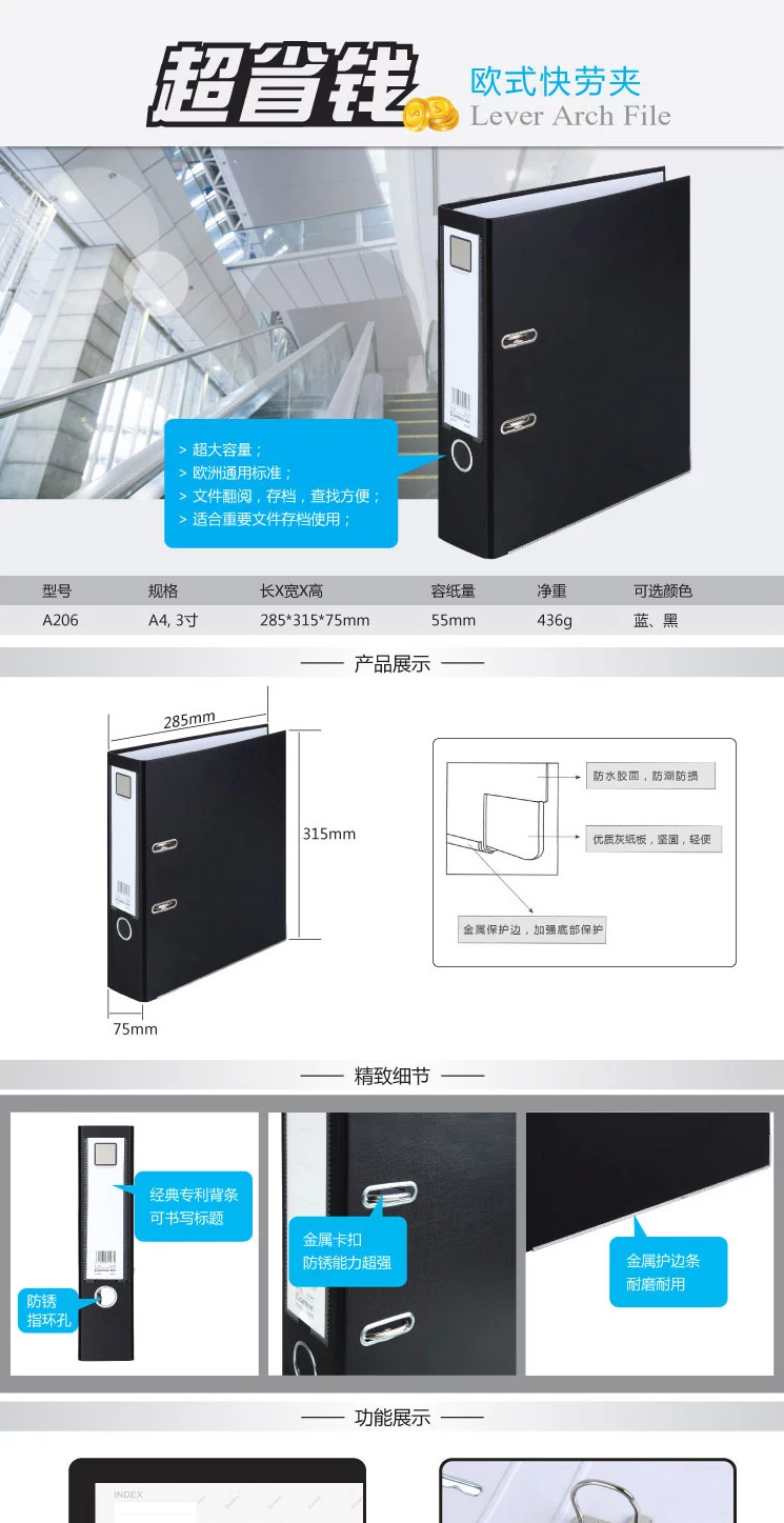 齐心快劳夹3寸A4 黑