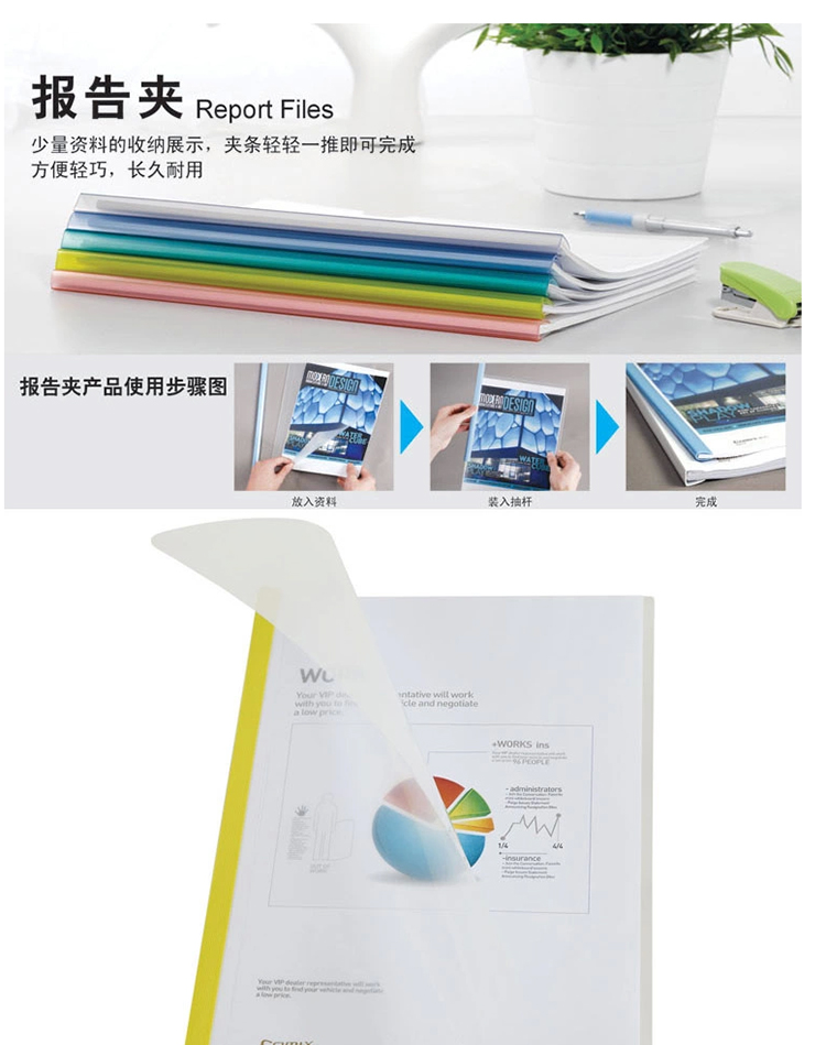 商品特点:1、使用方便,无需打孔或钉针,直接装订成册