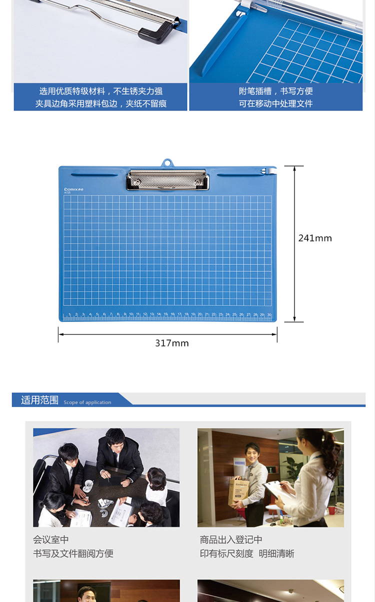 齐心横式板夹A4