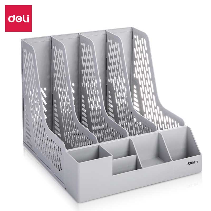 得力四格资料架 灰白 带整理盒