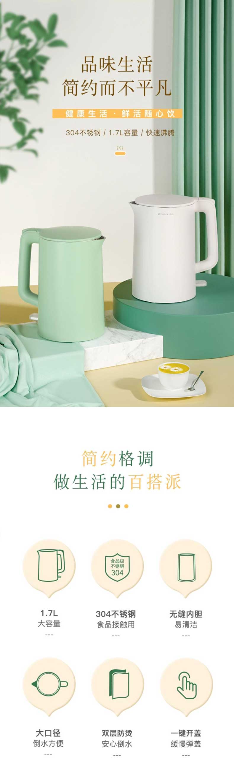单位:台 LC-207 电水壶/电热水壶双层防烫保温1850W,选用食品级304不锈钢,360度旋转底盘,质保一年。