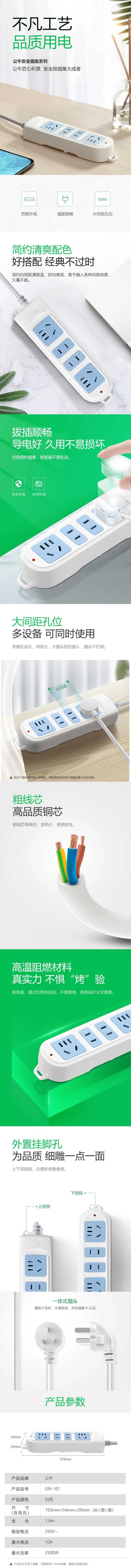 单位:个 GN101-1.8 四联插座/排插/插线板