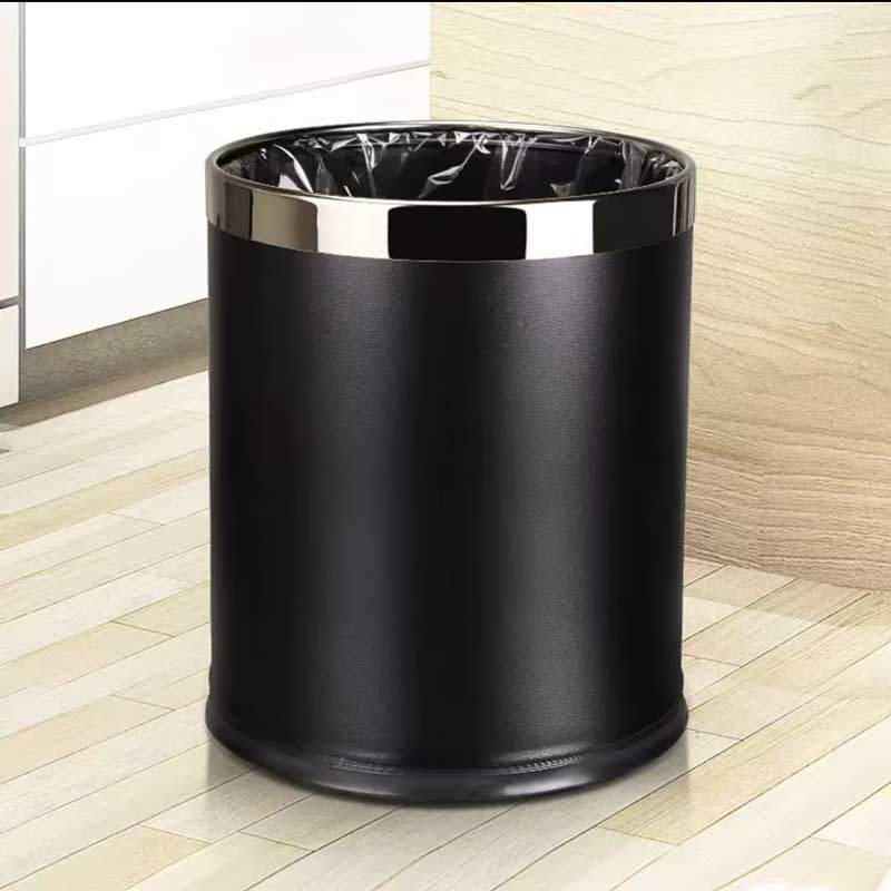 双层黑漆铁皮圆形垃圾桶