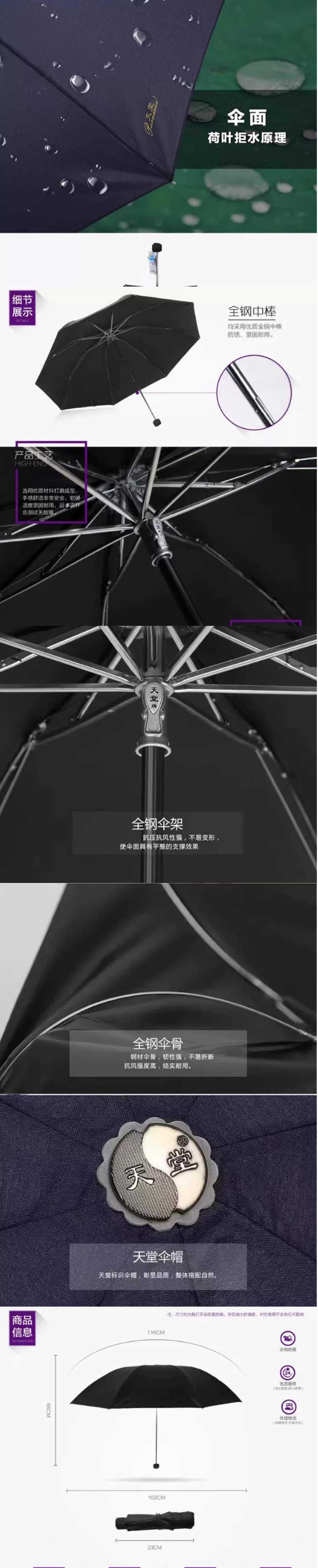 天堂三折晴雨伞 升级黑