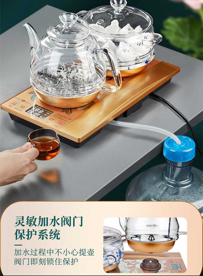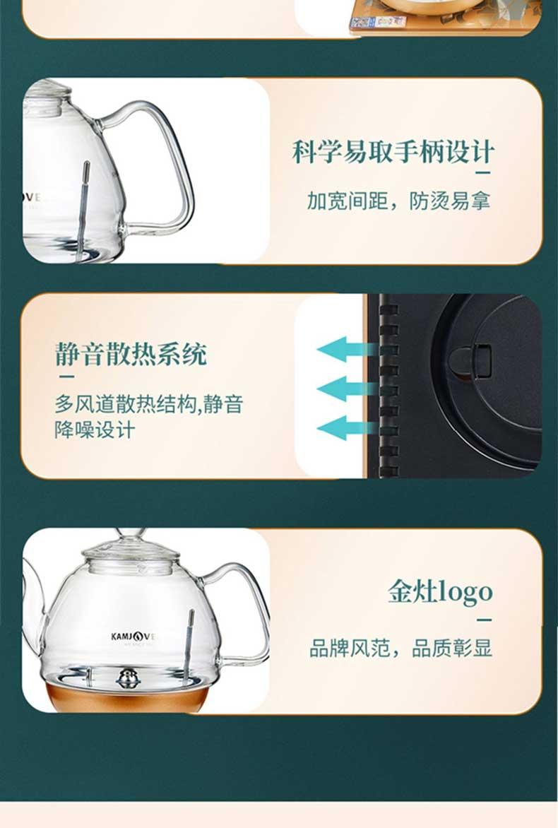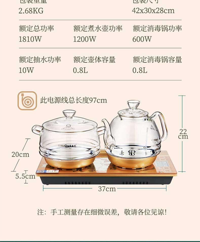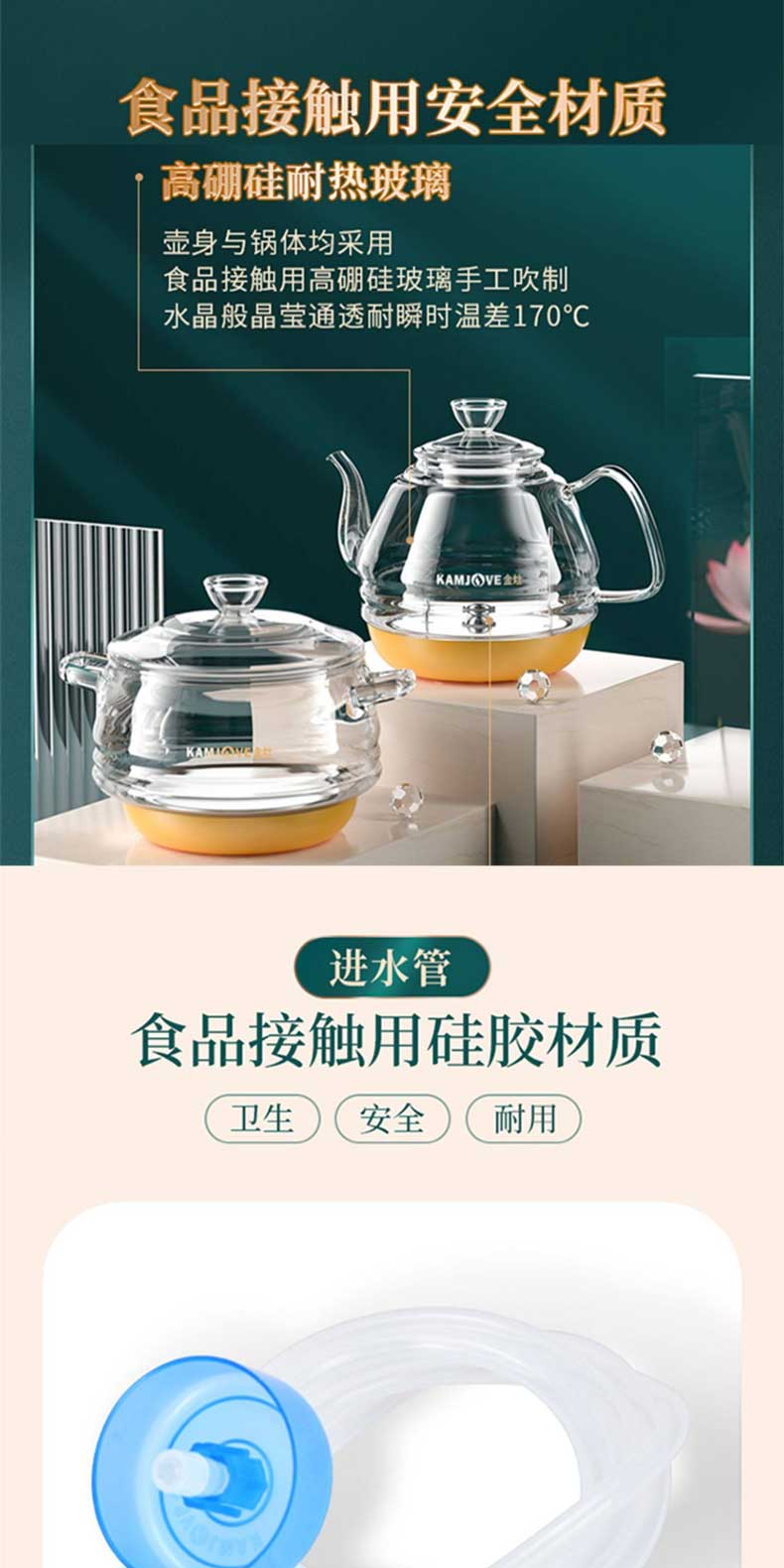金灶全智能玻璃电茶壶0.8L+0.8L三合一底部上水